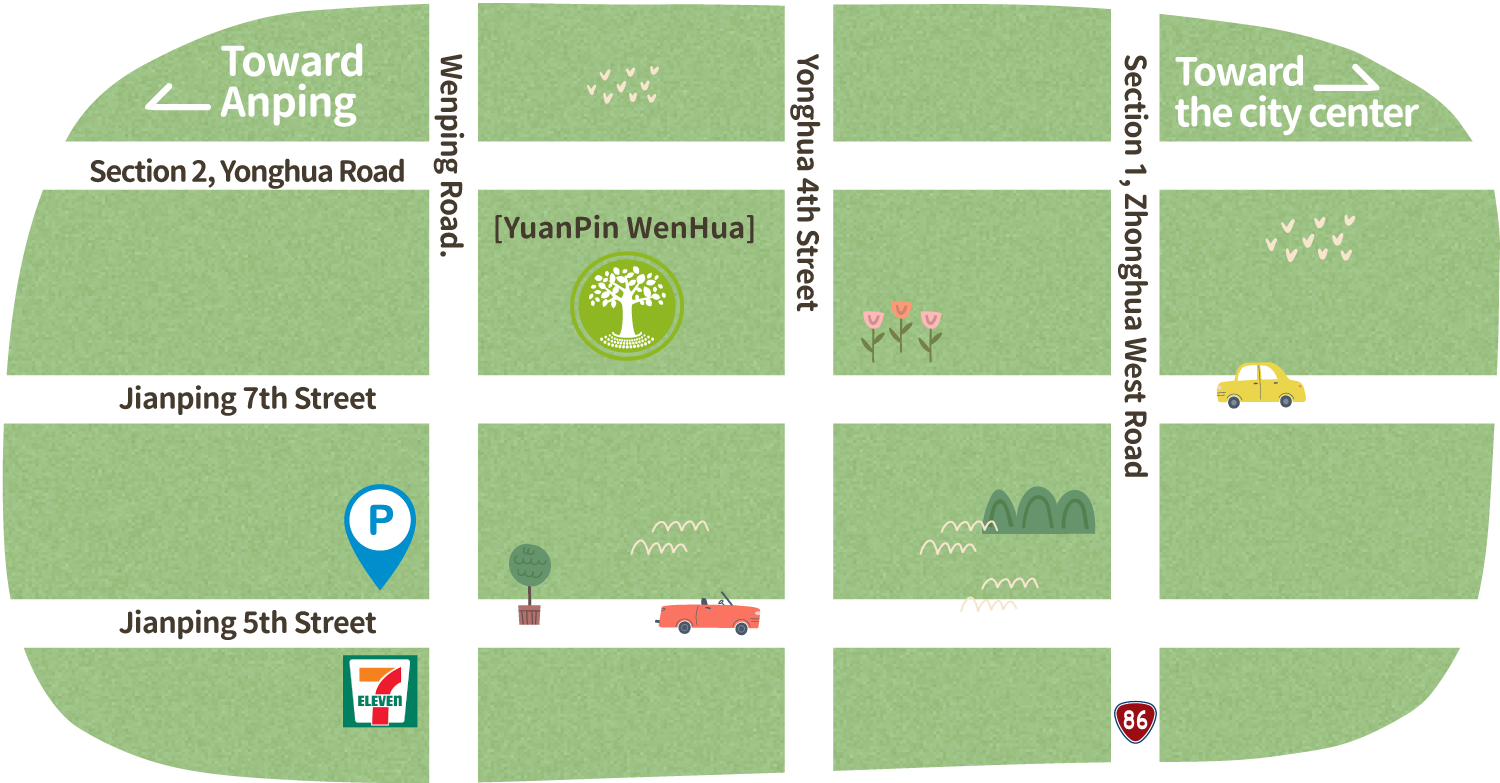 For visitors from outside Tainan, take the highway and transfer to Expressway 86 westbound. At the end of the expressway, turn right onto Provincial Highway 17 (West Coast Expressway), then continue to Section 2, Zhonghua West Road. Turn left onto Jianping 7th Street, and the destination is approximately 2 minutes ahead.