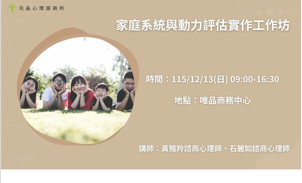 都非常歡迎你一同參與家庭系統與動力評估實作工作坊。